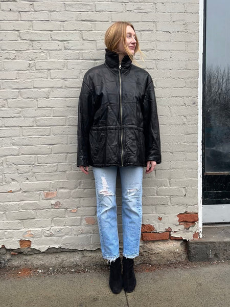 oversized. LEATHER. coat.
